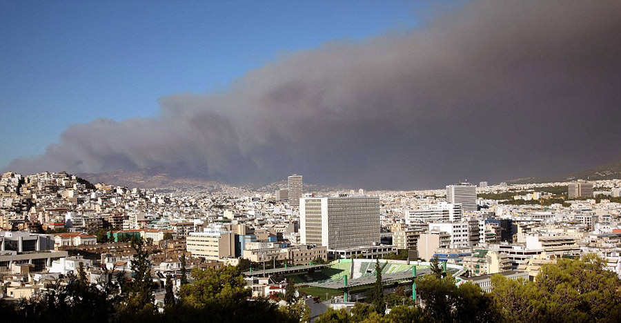 據(jù)英國媒體24日報道,希臘雅典東北部40公里外城郊上周五開始發(fā)生森林大火,由于火勢尚未受到控制,濃煙威脅附近數(shù)個城鎮(zhèn)。據(jù)悉當(dāng)前至少上萬人逃離家園避難。
