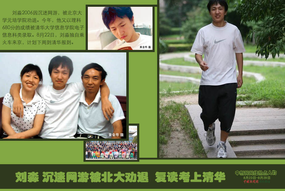 中新網(wǎng)本周熱點人物之——劉淼 劉淼2006因沉迷網(wǎng)游,被北京大學(xué)元培學(xué)院勸退。今年,他又以理科680分的成績被清華大學(xué)信息學(xué)院電子信息科類錄取。8月22日,劉淼獨自乘火車來京,計劃下周到清華報到。