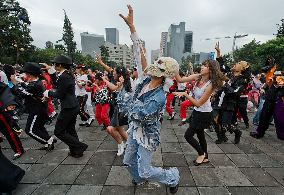 8月29日,逾萬名墨西哥人在墨西哥城廣場同時跳舞,用以紀念邁克爾·杰克遜第51個“生日”,同時也試圖打破同時跳舞人數(shù)最的吉尼斯世界紀錄。圖片來源:中國新聞網(wǎng)