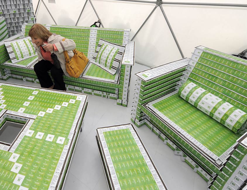 9月17日,在美國紐約,一位名叫布賴恩的設(shè)計(jì)師展示他利用房門卡設(shè)計(jì)的客房。這個(gè)占地約37平方米的酒店接待大廳、臥室和衛(wèi)生間是利用20多萬張房門卡搭建而成的。