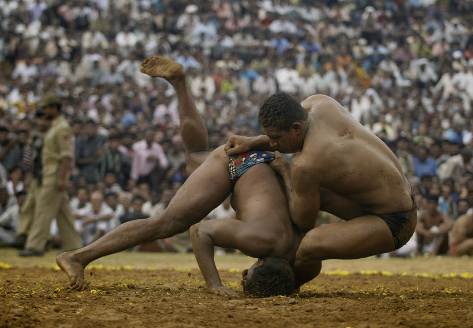 9月22日,印度格德拉,第5屆印度-巴基斯坦摔跤友誼賽在當(dāng)?shù)嘏e行。