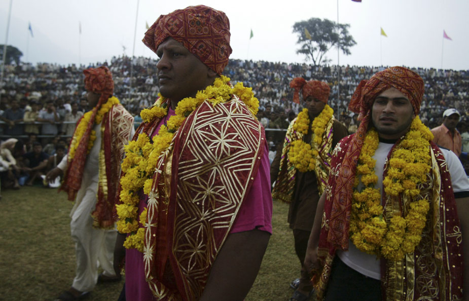 9月22日,印度格德拉,第5屆印度-巴基斯坦摔跤友誼賽在當?shù)嘏e行。