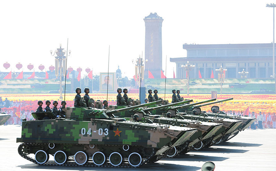 2009年10月1日,首都各界慶祝中華人民共和國成立60周年大會(huì)在北京舉行。這是履帶步戰(zhàn)車方隊(duì)通過天安門廣場。(cfp)