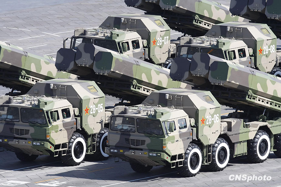 2009年10月1日,中華人民共和國(guó)成立60周年慶祝大會(huì)在北京舉行。圖為新型地地導(dǎo)彈方隊(duì)通過天安門廣場(chǎng)。