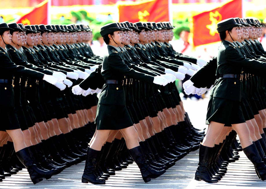 2009年10月1日,北京,首都各界慶祝中華人民共和國(guó)成立60周年大會(huì)在北京舉行。閱兵式上女兵方陣成為一道靚麗風(fēng)景。