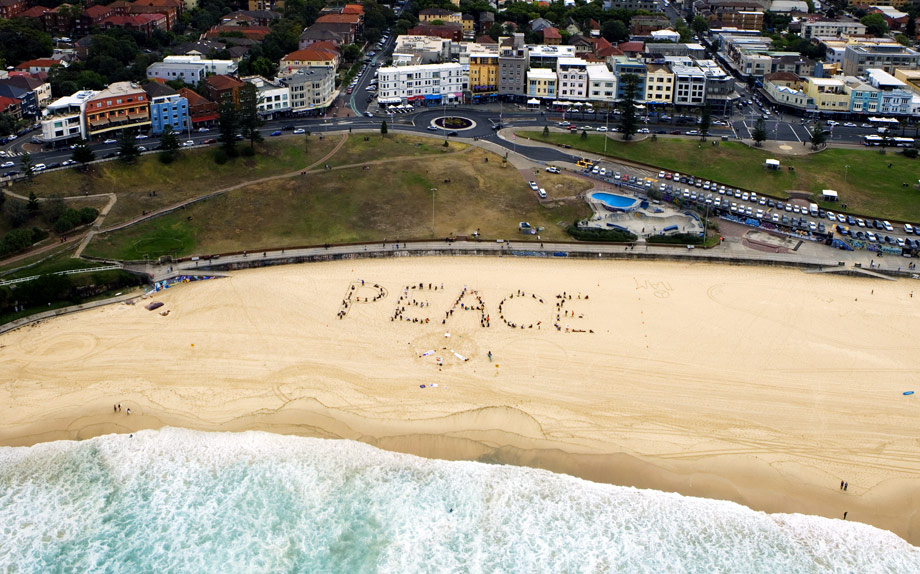 10月4日,一個(gè)在全球范圍內(nèi)祈求和平的活動(dòng)在多個(gè)國(guó)家展開,呼吁結(jié)束戰(zhàn)爭(zhēng)、消除核武器和結(jié)束各種暴力行為。在澳大利亞悉尼附近的海灘上,參加和平游行的人組成和平圖案。來(lái)源:中國(guó)新聞網(wǎng)
