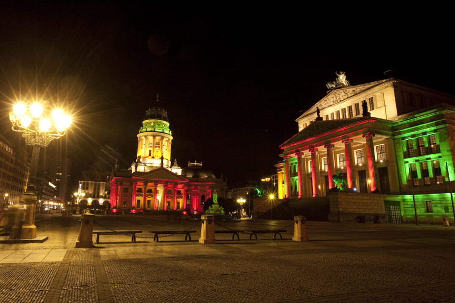 13日晚在德國(guó)首都柏林,勃蘭登堡門在“燈節(jié)”的提前預(yù)演中被五彩燈飾照亮。圖片來源:中國(guó)新聞網(wǎng)