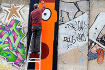 圖為街頭表演的舞者將路邊電線桿與路燈當(dāng)做“鋼管”。
