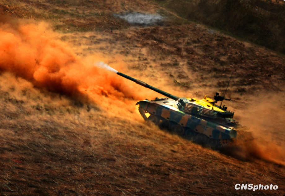 解放軍“前鋒-二00九A”演習(xí),二十二日在濟南軍區(qū)某合同戰(zhàn)術(shù)訓(xùn)練基地進行陸空聯(lián)合火力打擊實兵實彈演練。中新社發(fā) 宋吉河 攝