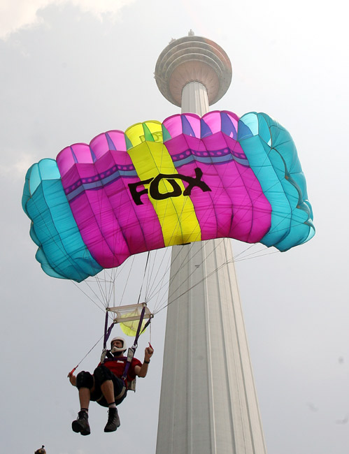 10月23日,馬來西亞吉隆坡電訊塔舉辦2009馬來西亞吉隆坡塔國際跳傘節(jié)。23日至25日將有約80名跳傘好手會在高達(dá)421米的吉隆坡塔上表演跳傘。