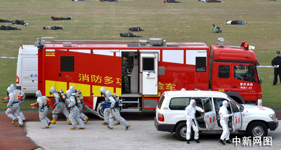23日,推進“平安重慶”建設突發(fā)事件應急演練在該市渝中區(qū)大田灣體育場舉行,重慶各警種突精銳力量重裝登場,將各類事件一一化解。