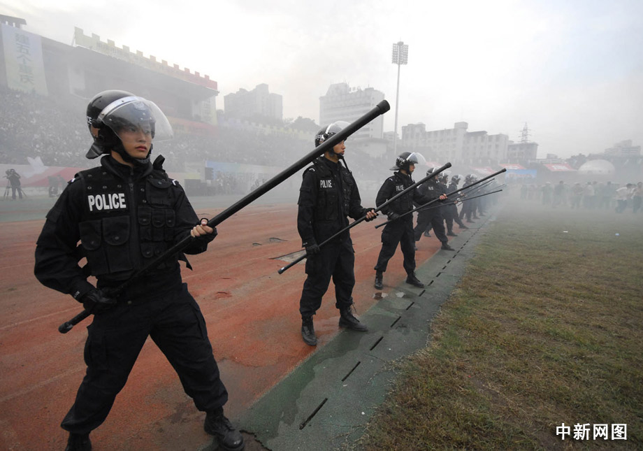 23日,推進“平安重慶”建設(shè)突發(fā)事件應(yīng)急演練在該市渝中區(qū)大田灣體育場舉行,重慶各警種突精銳力量重裝登場,將各類事件一一化解。