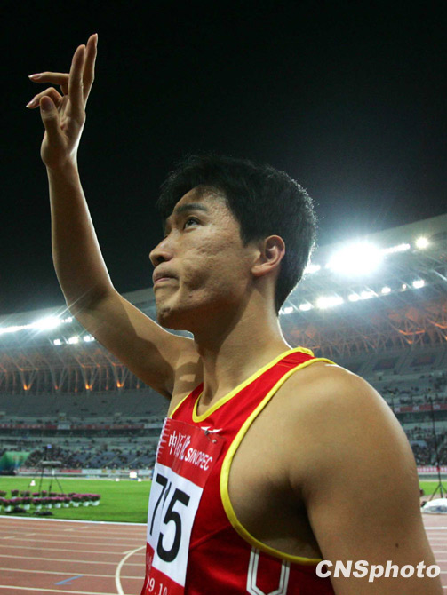 10月24日晚,全運(yùn)會110米欄預(yù)賽在濟(jì)南奧體中心舉行,“飛人”劉翔以13秒75成績輕松晉級決賽。來源:中國新聞網(wǎng)