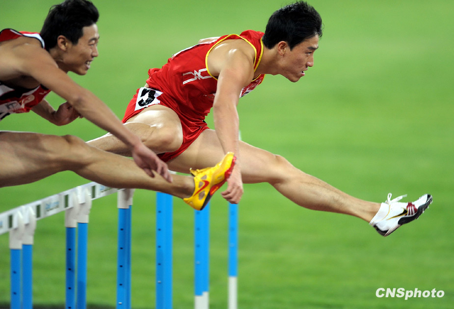 10月25日,在全運會田徑男子110米欄決賽中,上海代表團選手、“中國飛人”劉翔以13秒34的成績勇奪冠軍,同時也成就了其全運會該項目三連冠的偉業(yè)。中新社發(fā) 陳文 攝