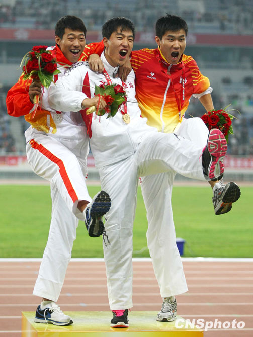 10月25日,在全運(yùn)會(huì)田徑男子110米欄決賽中,上海代表團(tuán)選手、“中國飛人”劉翔以13秒34的成績勇奪冠軍,同時(shí)也成就了其全運(yùn)會(huì)該項(xiàng)目三連冠的偉業(yè)。
