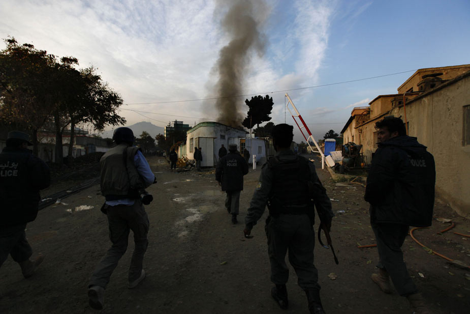 當地時間10月28日凌晨,阿富汗首都喀布爾市中心突然傳來槍聲和爆炸聲,警方隨后與躲藏在一棟聯合國人員公寓樓內的3名武裝分子展開交火。這一事件至少造成5名聯合國人員死亡,3名武裝分子被擊斃。 塔利班宣稱對此次襲擊事件負責,并稱這是武力阻止阿富汗第二輪總統(tǒng)大選的“第一步”。