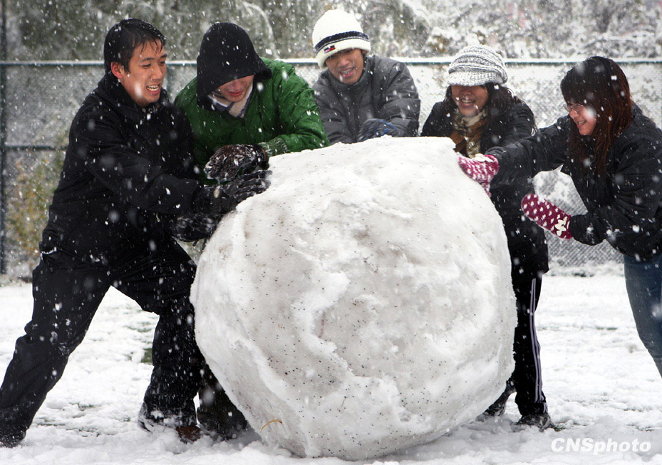11月1日農(nóng)歷九月十五,尚未立冬的北京受強(qiáng)冷空氣影響大雪紛飛銀裝素裹,幾名來自赤道印尼的年輕人滾起碩大的雪球享受罕見的雪中樂趣。受強(qiáng)冷空氣影響,北京從昨天夜間開始出現(xiàn)小雨,今天凌晨轉(zhuǎn)為大雪,午后降雪逐漸減弱。根據(jù)過去50年的數(shù)據(jù)統(tǒng)計(jì),北京地區(qū)常年出現(xiàn)初雪的時(shí)間在每年的11月29日左右,今年的初雪時(shí)間提前了整整一個(gè)月。中新社發(fā) 任晨鳴 攝