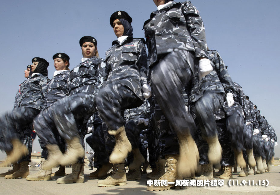 9日(周一),美國培訓(xùn)的新一批伊拉克警務(wù)人員,經(jīng)過專定的警察科目培訓(xùn)后正式畢業(yè),其中還包括50名女警察。她們將參加巴格達的警察部隊。圖片來源:中國新聞網(wǎng)