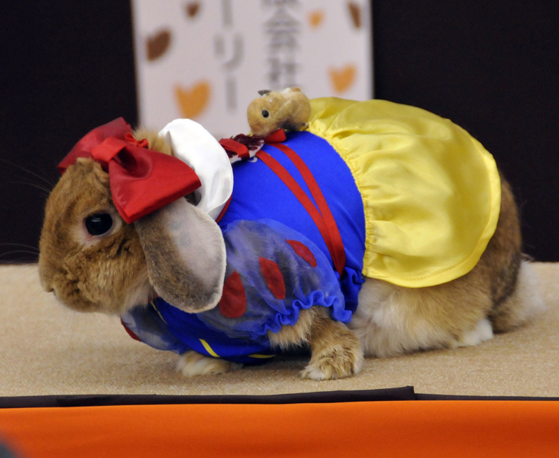 11月15日,在日本舉行了一場兔子時裝大賽,眾多愛好者把自己的兔子打扮的時髦靚麗前來參賽。