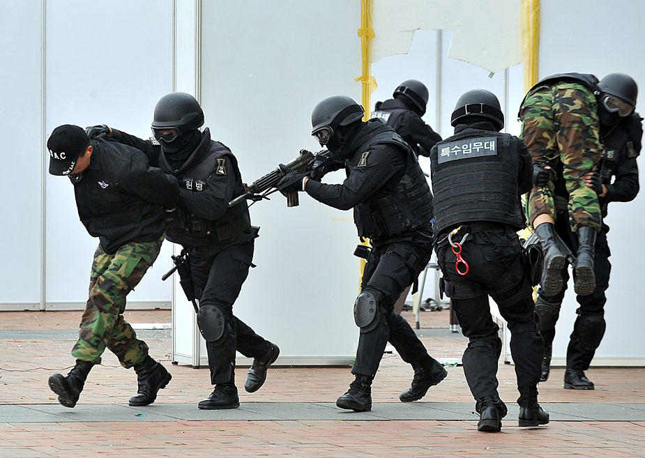 11月16日,韓國在距首爾以北30公里處舉行了由特種兵參與的反恐演習。圖片來源:中國新聞網(wǎng)
