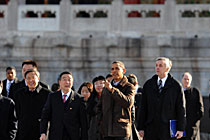 11月17日,正在中國(guó)進(jìn)行國(guó)事訪問(wèn)的美國(guó)總統(tǒng)奧巴馬一行參觀北京故宮。圖片來(lái)源:中國(guó)新聞網(wǎng)