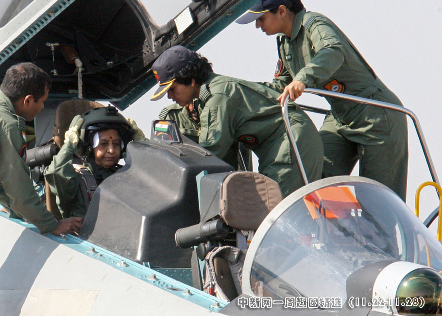 11月25日,74歲的印度女總統(tǒng)帕蒂爾在印度孟買附近的馬哈拉施特拉邦浦那地區(qū)的洛黑岡空軍基地,乘印度最先進(jìn)的蘇-30戰(zhàn)斗機(jī)飛上藍(lán)天,這是她首次乘坐戰(zhàn)斗機(jī)。圖片來源:中國新聞網(wǎng)>>點(diǎn)擊觀看詳細(xì)內(nèi)容