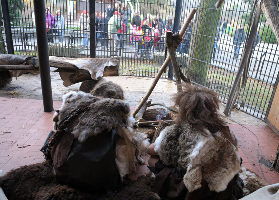 11月27日,波蘭首都華沙動(dòng)物園里,一男一女兩個(gè)志愿者扮成原始洞穴人向參觀者進(jìn)行展示。該動(dòng)物園想通過(guò)這項(xiàng)為期一周的活動(dòng),提醒參觀者注意人類也是動(dòng)物界的一部分。