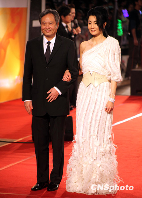 第46屆臺(tái)灣金馬獎(jiǎng)?lì)C獎(jiǎng)禮28日晚上在臺(tái)北盛大舉行。金馬獎(jiǎng)4屆影后、闊別臺(tái)灣9年的張曼玉此次擔(dān)任頒獎(jiǎng)嘉賓讓不少人期待,當(dāng)晚她攜手導(dǎo)演李安,以一襲斜肩白裙驚艷亮相,氣質(zhì)不俗。中新社發(fā) 李佳佳 攝