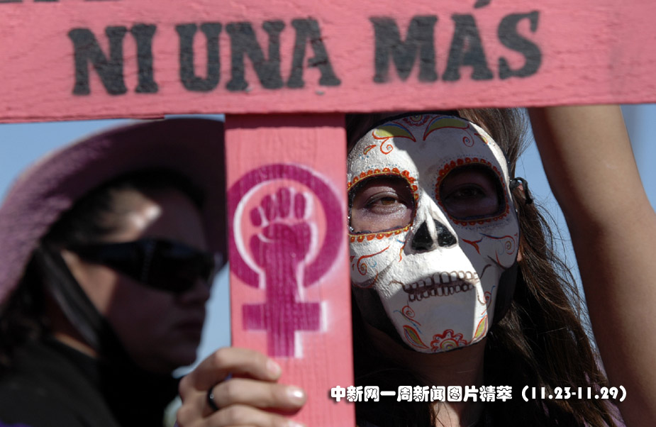 23日(周一),墨西哥,一位黑人女性舉牌抗議有婦女在墨西哥被殺害事件。圖片來源:中國新聞網(wǎng)