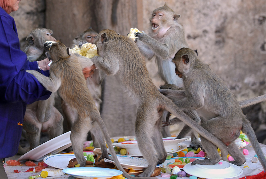 11月29日,泰國(guó)迎來(lái)了一年一度的傳統(tǒng)節(jié)日“猴節(jié)”。猴子們?cè)诿磕?1月份的最后一個(gè)周日迎來(lái)自己的節(jié)日。圖片來(lái)源:中國(guó)新聞網(wǎng)