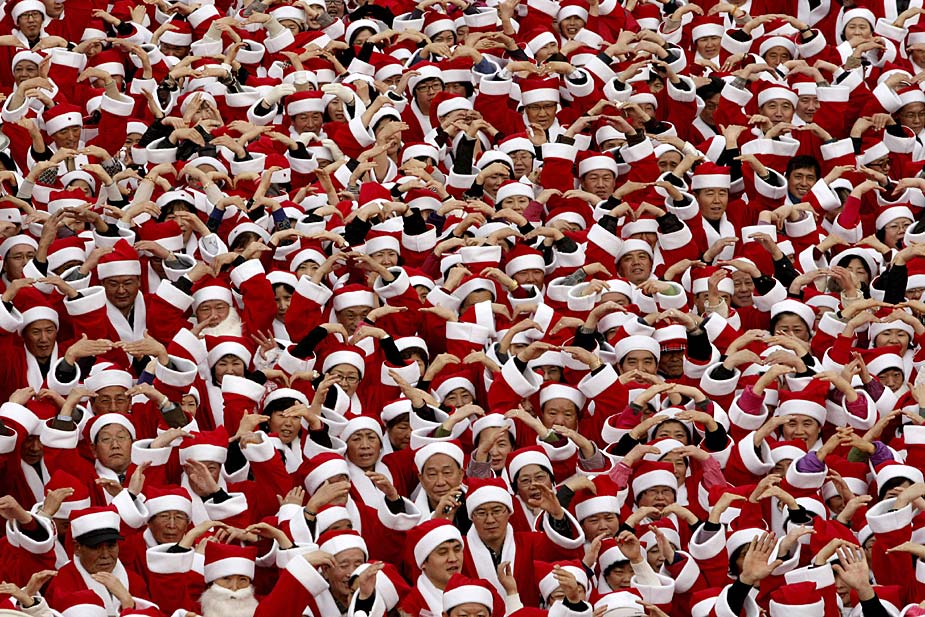 12月1日,韓國首都首爾市,一千多名“圣誕老人”舉行游行為社會慈善項(xiàng)目籌款。圖片來源:中國新聞網(wǎng)