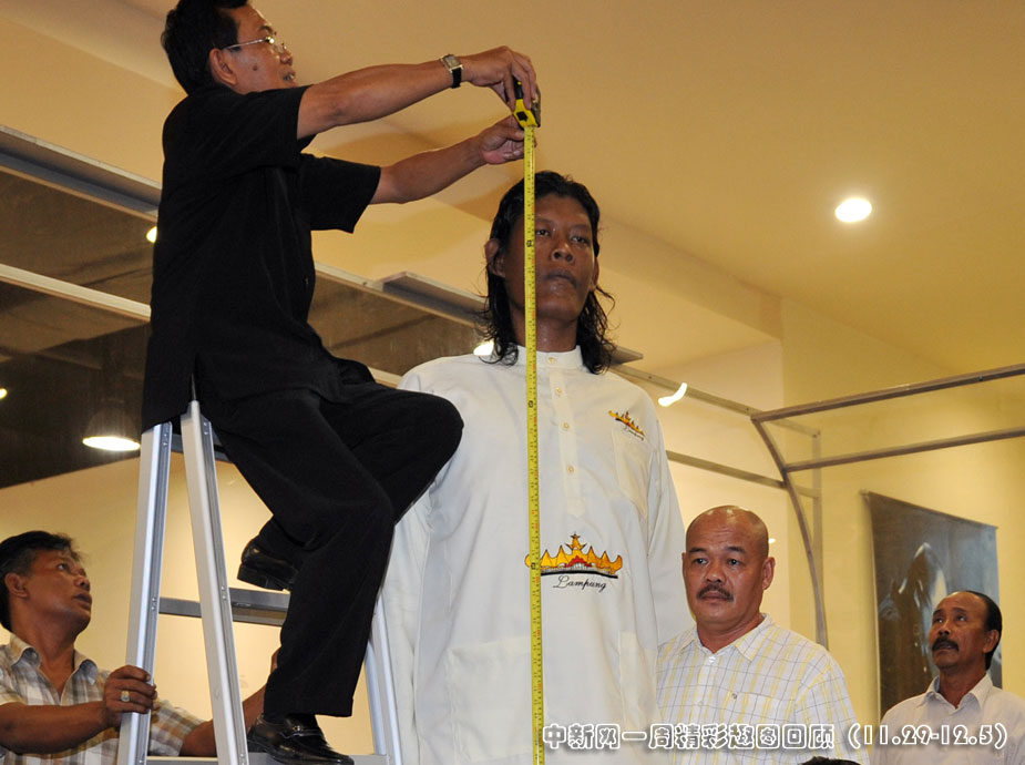 日前,印度尼西亞傳出一個名叫蘇帕華諾的男子身高達2.71米,可能是全球第一高人。不過據(jù)后來實際測量,蘇帕華諾其實身高2.42米,并未打破吉尼斯紀錄。圖片來源:中國新聞網>>點擊觀看詳細內容