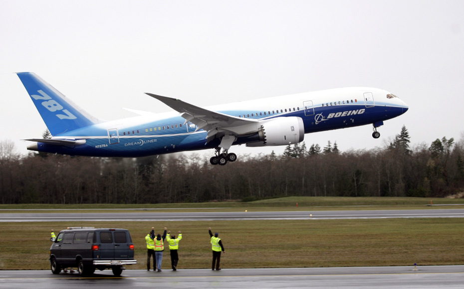 當地時間15日上午10時,華盛頓州埃佛瑞特潘恩機場,兩名飛行員邁克爾•卡瑞克爾和蘭多爾•內維勒駕駛的波音787飛機順利升空,在飛行了大約四個多小時后返回地面。