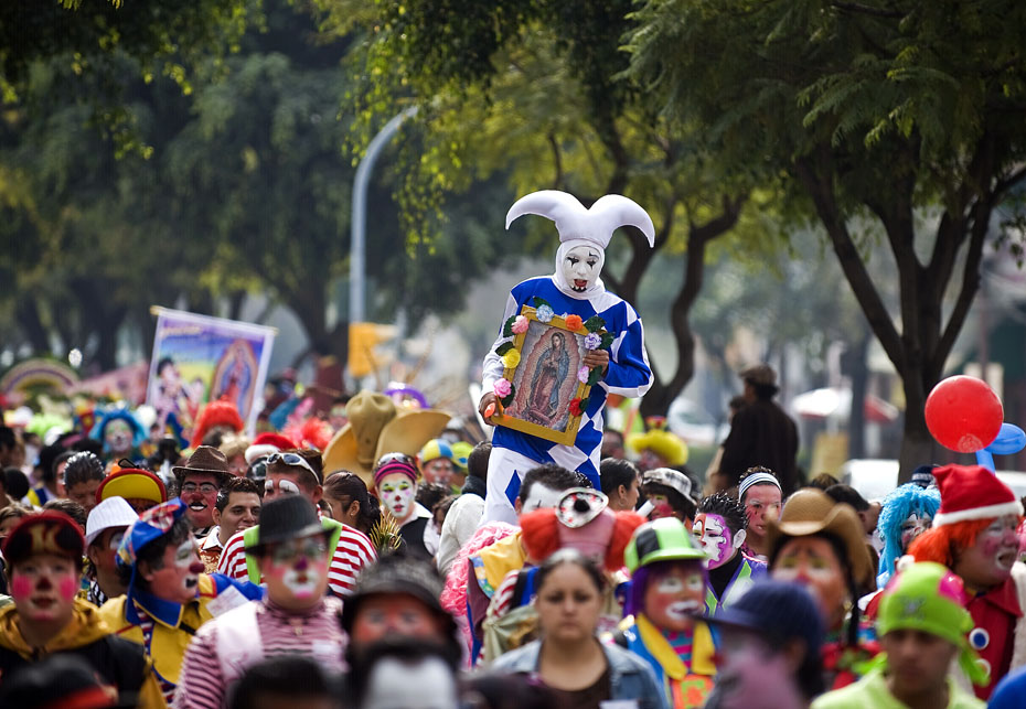 12月16日,墨西哥小丑們聚集在首都墨西哥城參加街頭游行活動(dòng),700多名小丑用自己五彩斑斕的服飾和滑稽可笑的表演為沿途的人們帶來歡笑。圖片來源:中國新聞網(wǎng)