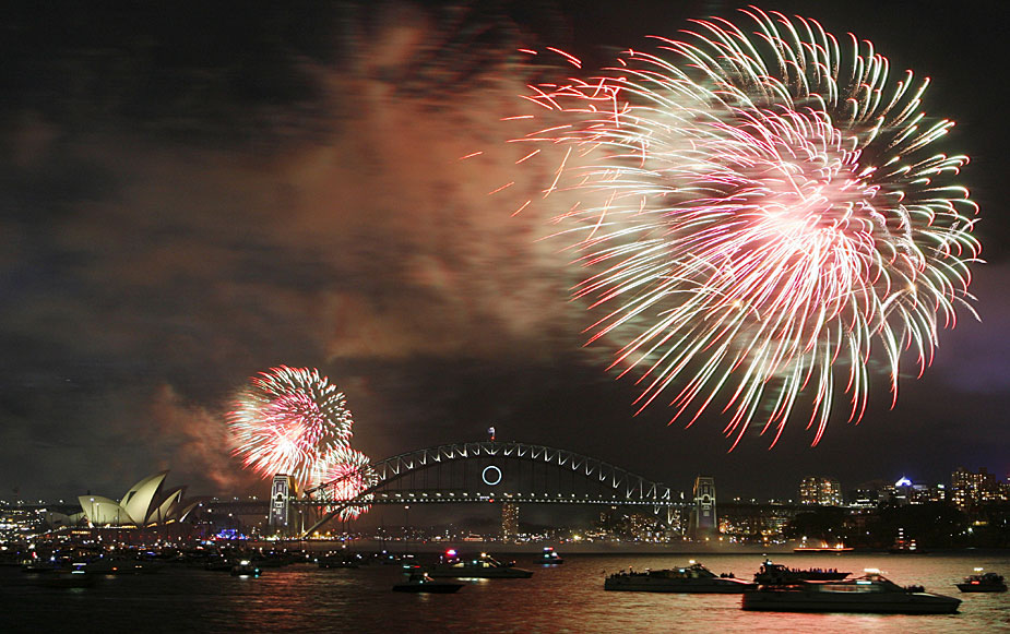 圖為12月31日,絢麗的煙花與悉尼灣大橋和悉尼歌劇院交相輝映。澳大利亞悉尼市當(dāng)晚舉行焰火表演,迎接即將到來的新年。