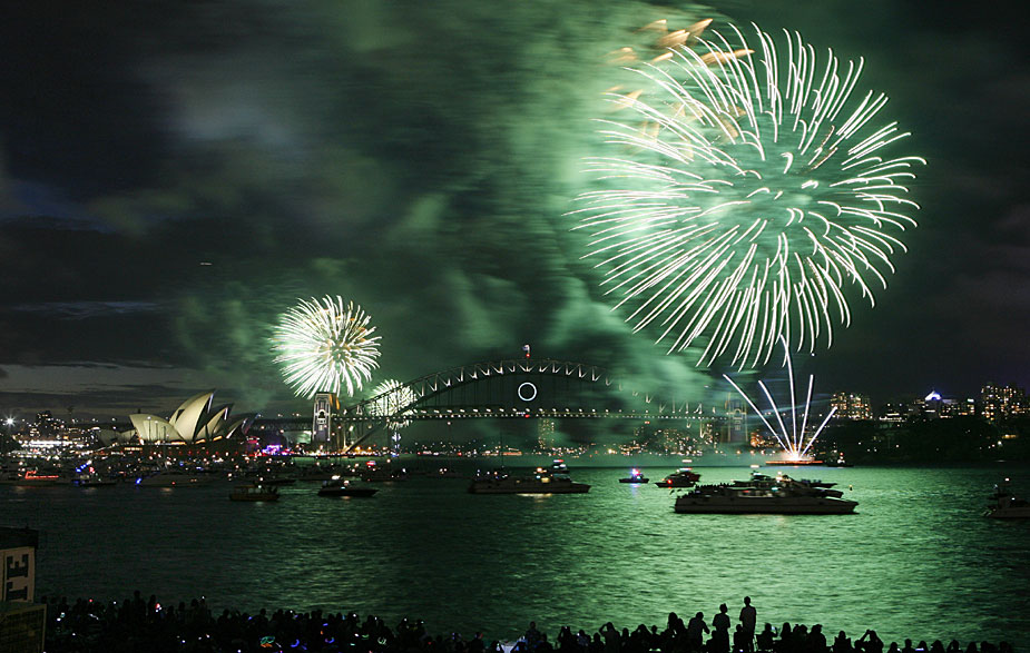 圖為12月31日,絢麗的煙花與悉尼灣大橋和悉尼歌劇院交相輝映。澳大利亞悉尼市當(dāng)晚舉行焰火表演,迎接即將到來的新年。