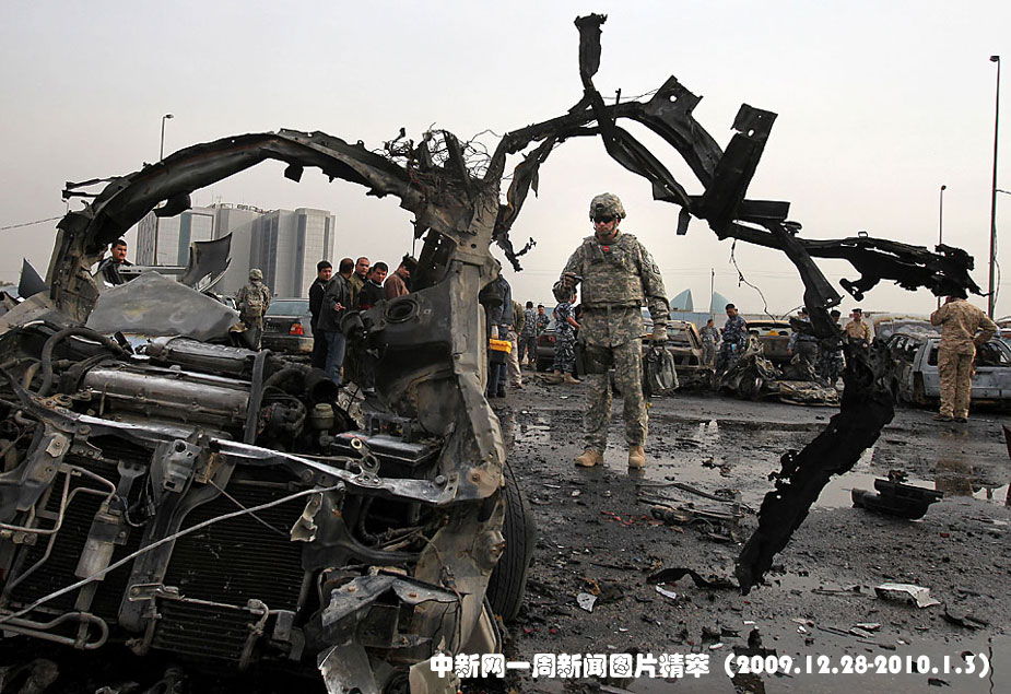 周二(29日),巴格達(dá)東部的政府辦公地發(fā)生爆炸事件,駐阿美軍士兵正在檢查案發(fā)地。圖片來源:中國新聞網(wǎng)
