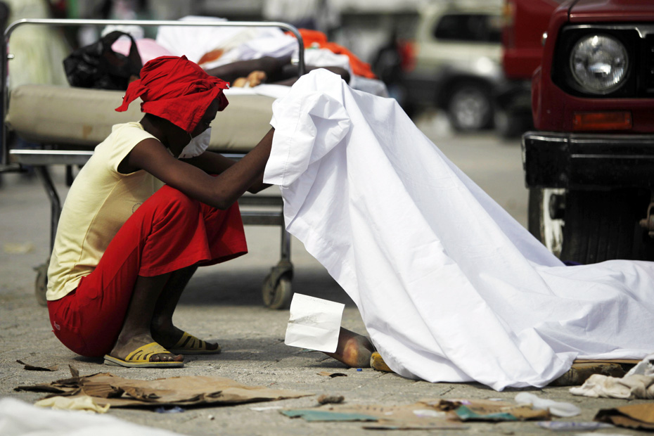海地7級大地震后,街邊一排排無名尸體已開始腐爛,在巨大的廢墟下時不時的傳出被壓難民的呻吟聲,幾乎夷為平地的首都太子港淪為露天難民營。圖片來源:中國新聞網