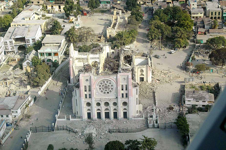 當地時間2010年1月14日,海地太子港,在地震中倒塌的教堂。