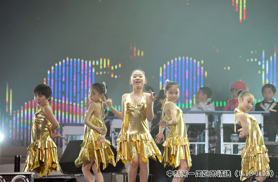 1月11日晚,第二屆音樂風云榜新人盛典在京舉行,盛典現(xiàn)場的音樂課上,兒童版的Wonder Girl、Super Junior、邁克爾·杰克遜、曾軼可、大張偉紛紛登臺獻藝,讓現(xiàn)場觀眾們笑聲不斷。圖片來源:中國新聞網>>點擊觀看詳細內容