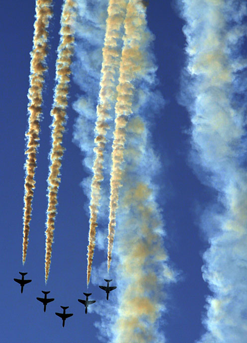 1月21日,巴林國際航空展在毗鄰巴林F1賽場(chǎng)的SAKHIR空軍基地開幕。在開幕式上,飛行表演隊(duì)舉行了異彩紛呈的飛行表演。圖片來源:中國新聞網(wǎng)
