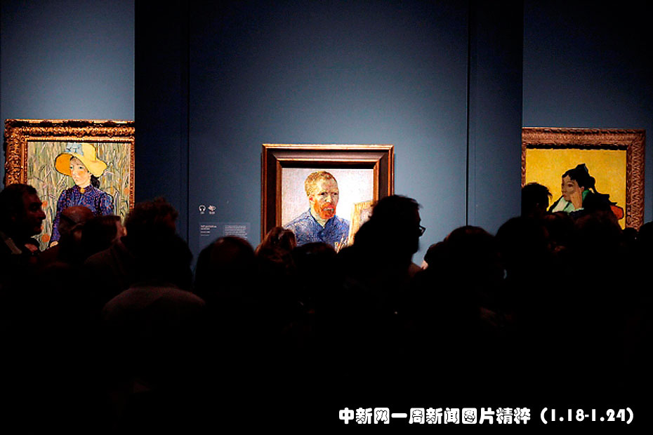 1月23日,倫敦梵高展《真實(shí)的梵高在英國(guó)倫敦皇家藝術(shù)學(xué)院舉行,各路媒體記者前來(lái)?yè)屜纫欢么髱煹淖髌。照片正中的這幅畫為梵高的自畫像。圖片來(lái)源:中國(guó)新聞網(wǎng)