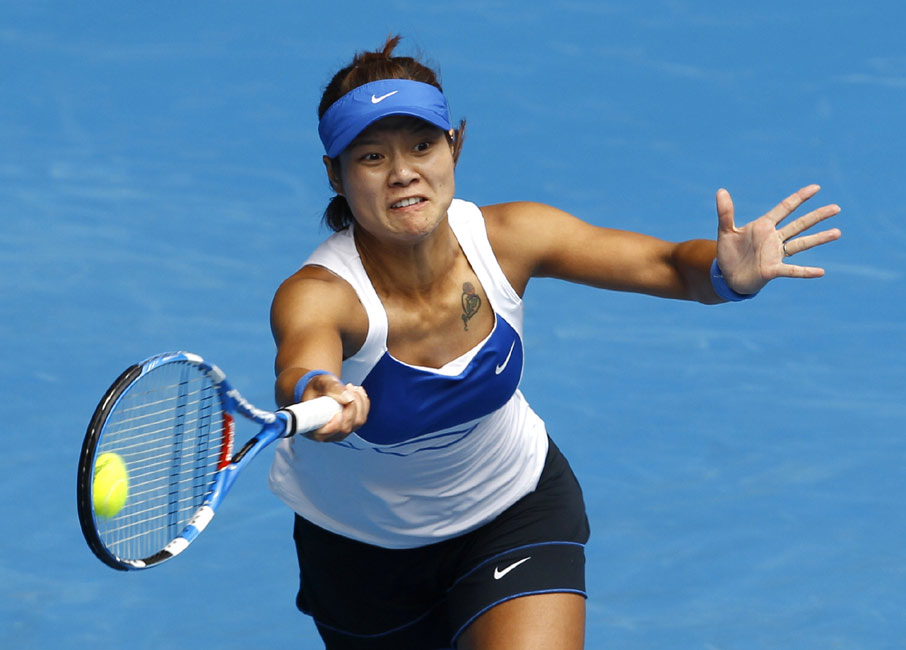 27日,中國選手李娜在澳大利亞網(wǎng)球公開賽上,以2-6、7-6、7-5頑強逆轉(zhuǎn)實力超群的大威廉姆斯,攜手鄭潔闖入四強,并且創(chuàng)下了個人大滿貫最佳成績。圖片來源:中國新聞網(wǎng)