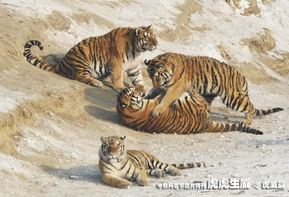 1月13日,黑龍江東北虎林園,老虎在雪地中嬉戲追逐。(王少華 張書儉 攝)