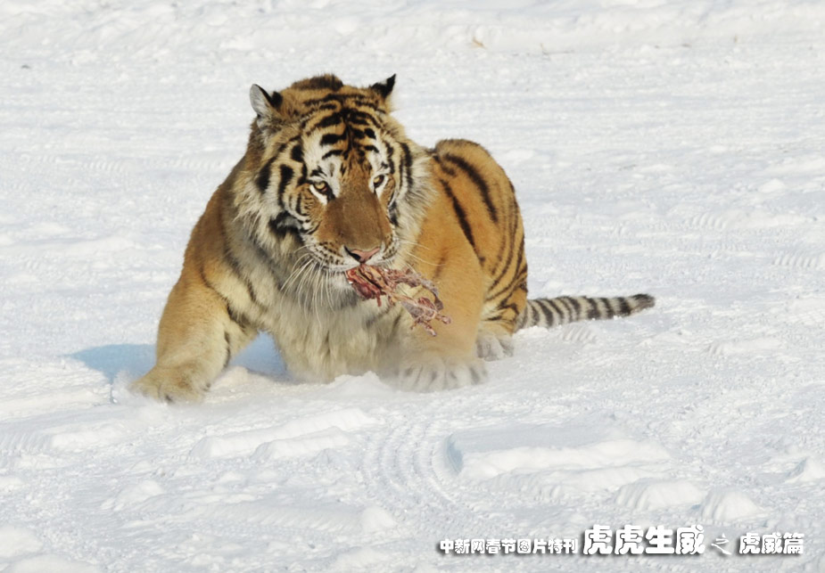 1月13日,黑龍江東北虎林園,老虎在雪地中嬉戲追逐。(王少華 張書儉 攝)