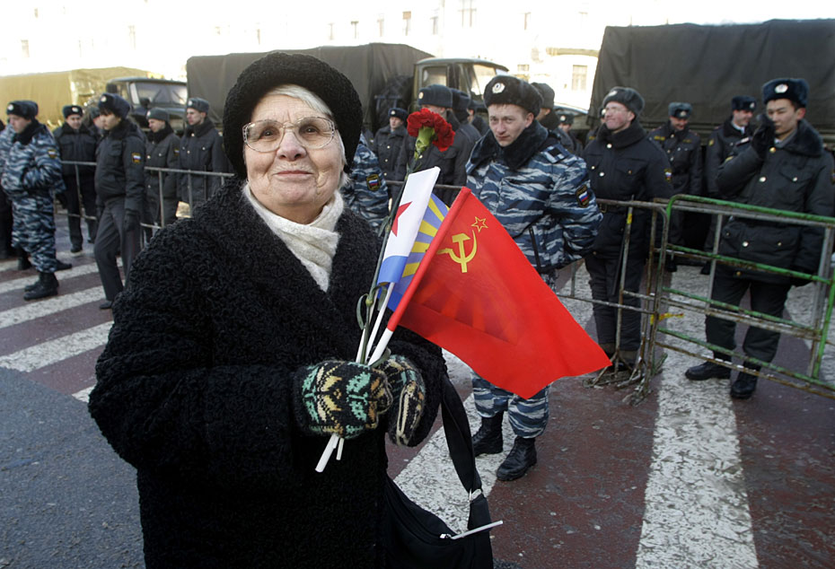 2月23日,俄羅斯莫斯科,示威者參加俄羅斯共產(chǎn)黨組織的集會(huì),抗議軍隊(duì)改革。圖片來源:中國(guó)新聞網(wǎng)