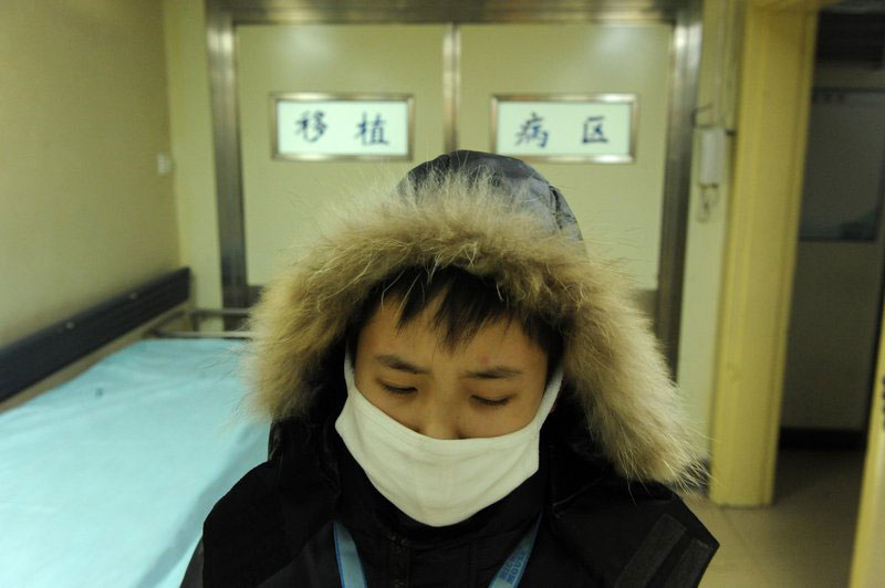 圖為準(zhǔn)備回家的邵帥經(jīng)過母親所在病房時顯得特別的疲憊。朱嘉磊/CFP