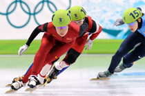 當?shù)貢r間2月24日,溫哥華冬奧會女子短道速滑3000米接力A組決賽中,中國隊王濛、周洋、孫琳琳、張會四朵金花聯(lián)袂出擊,最終將金牌歸入中國隊囊中。圖片來源:中國新聞網(wǎng)