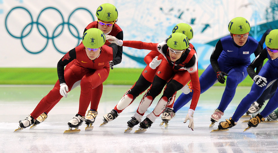 當(dāng)?shù)貢r間2月24日,溫哥華冬奧會女子短道速滑3000米接力A組決賽中,中國隊王濛、周洋、孫琳琳、張會四朵金花聯(lián)袂出擊,最終將金牌歸入中國隊囊中。這也是本屆冬奧會中國隊奪得的第四枚金牌。圖片來源:中國新聞網(wǎng)