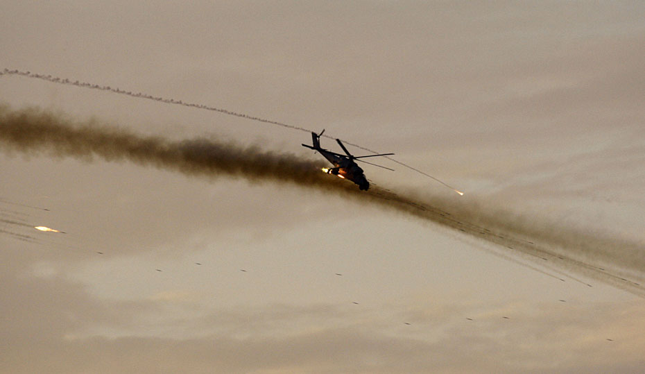 2月28日,印度空軍在該國西部地區(qū)舉行大規(guī)?罩谢鹆φ故狙萘(xí),出動了包括“費爾康”空中預(yù)警機(jī)、蘇-30戰(zhàn)斗機(jī)、米格-29戰(zhàn)斗機(jī)、幻影-2000戰(zhàn)斗機(jī)、伊爾-76運輸機(jī)和米-35武裝直升機(jī)等約百架戰(zhàn)機(jī)。圖片來源:中國新聞網(wǎng)